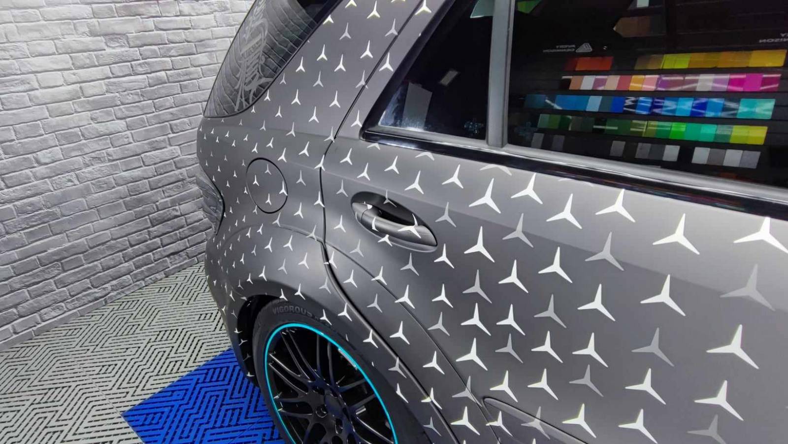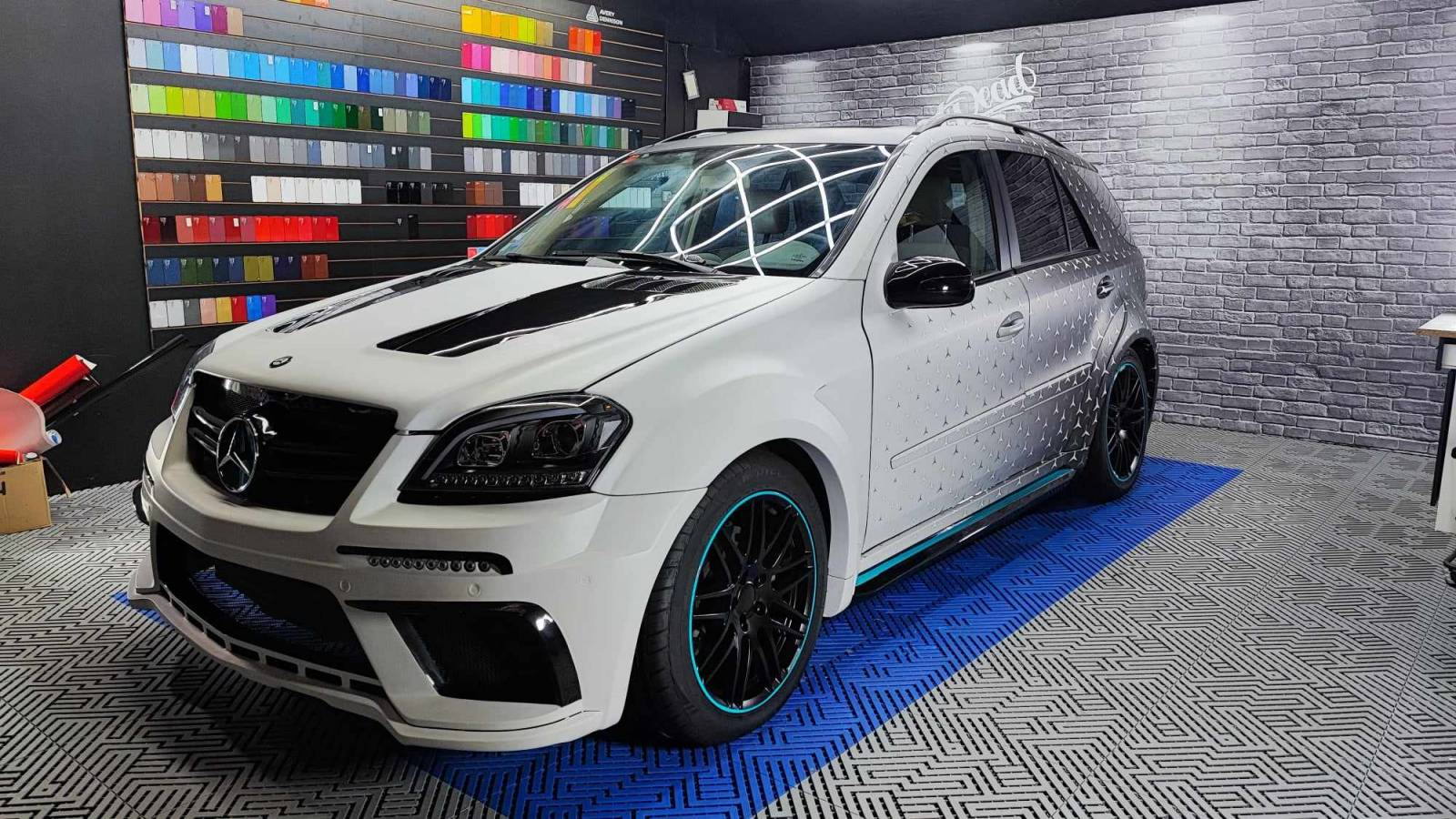 En cet fin de mois, nous avons accueilli cette somptueuse Mercedes ML; afin de la relooker, en créent un dégrade claire obscure avec le logo merco qui fait resortir le dégradé.