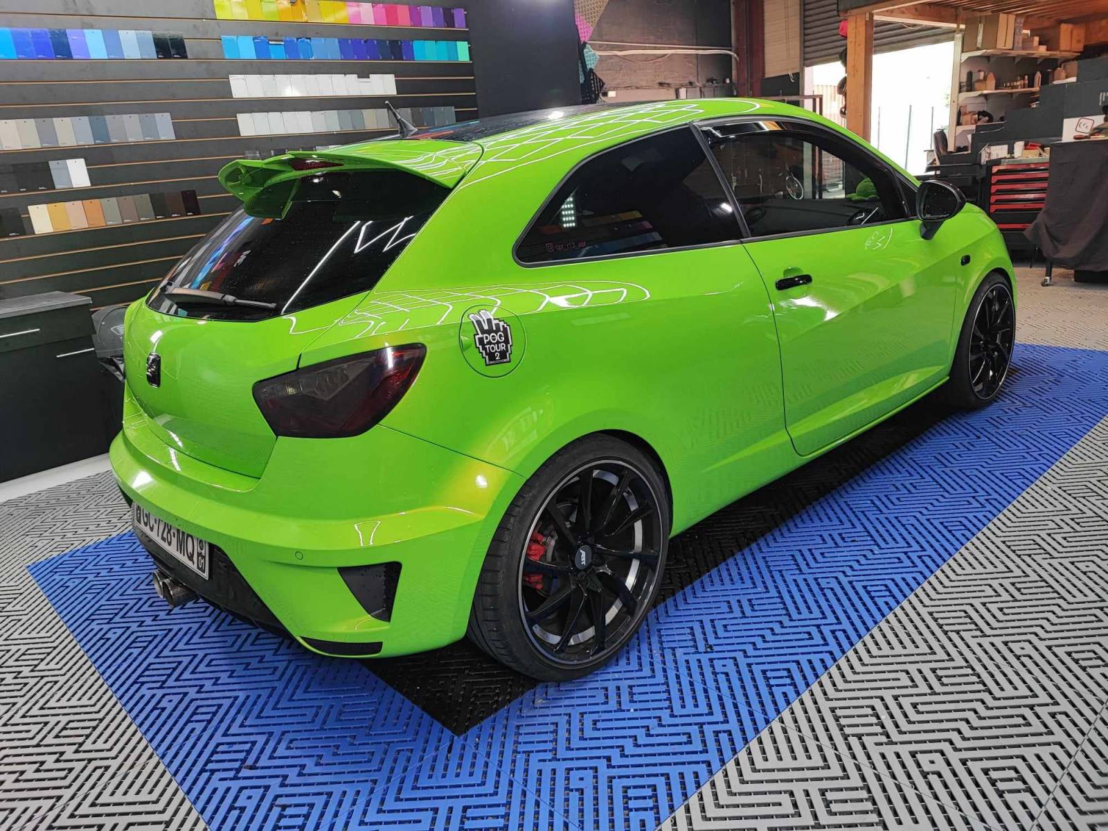 Nous avons réalisé le covering de cette Seat, qui était de base toute verte.