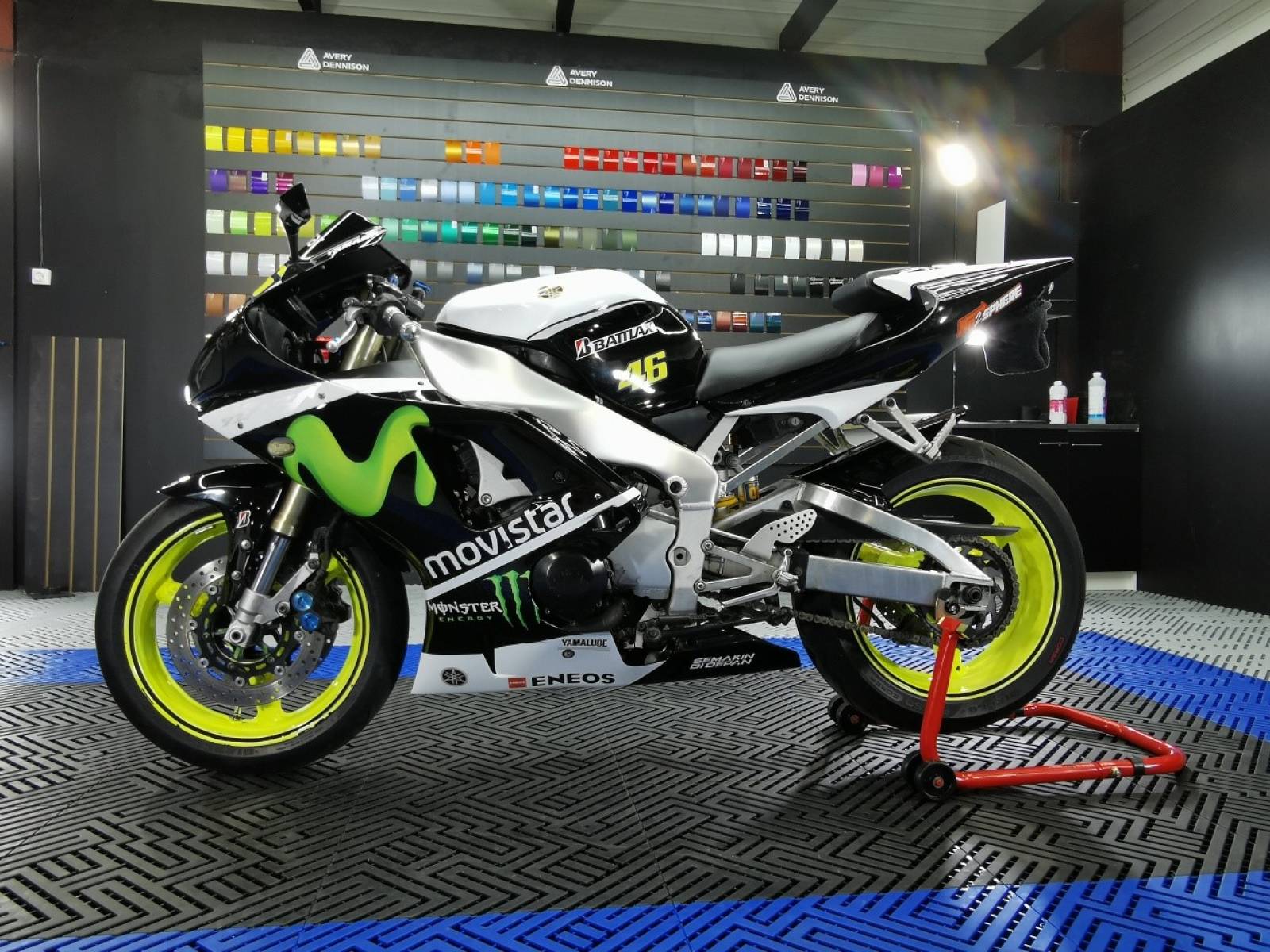 Un covering inspiré de la moto du célèbre Valentino Rossi et de sa déco Movistar