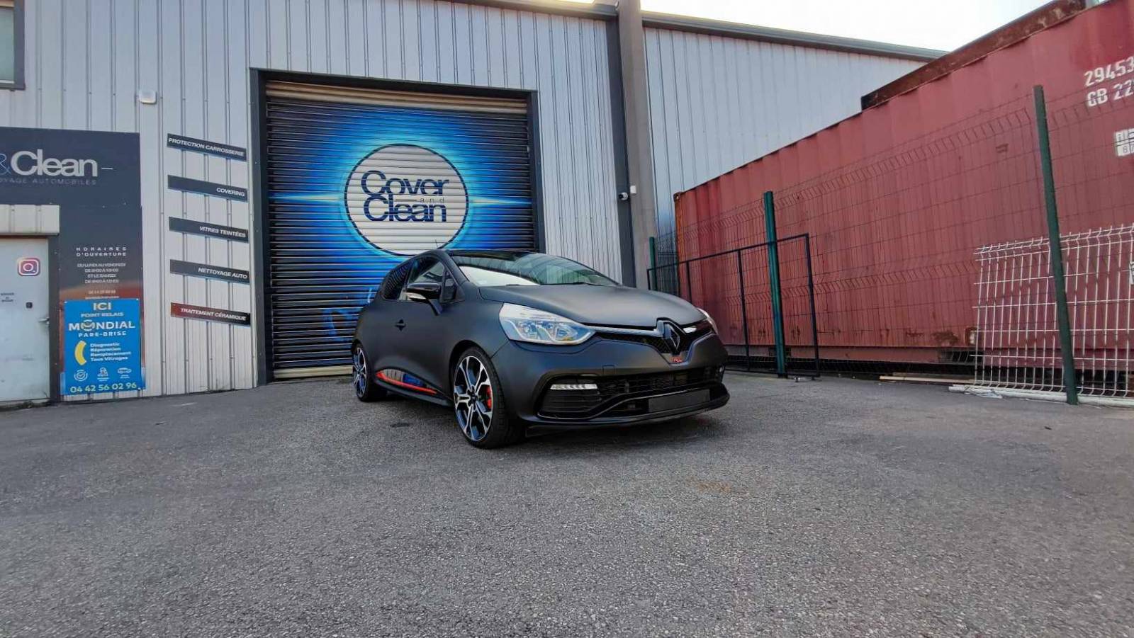 La semaine passé nous avons reçu une Clio 4 RS qui voulait paraître plus sportive donc pour cela nous avons fait une total covering noir avec de légère touche rouge pour faire ressortir la vitesse ainsi que le côte sportif.