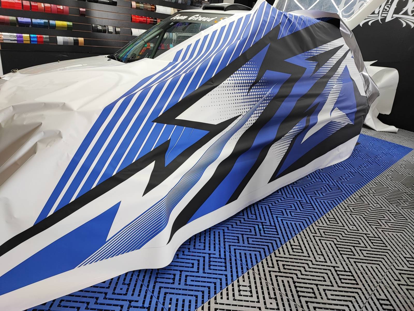 Cette semaine, nous avons réalisé sur cette petite bombe une saxo préparée rallye un covering en impression.