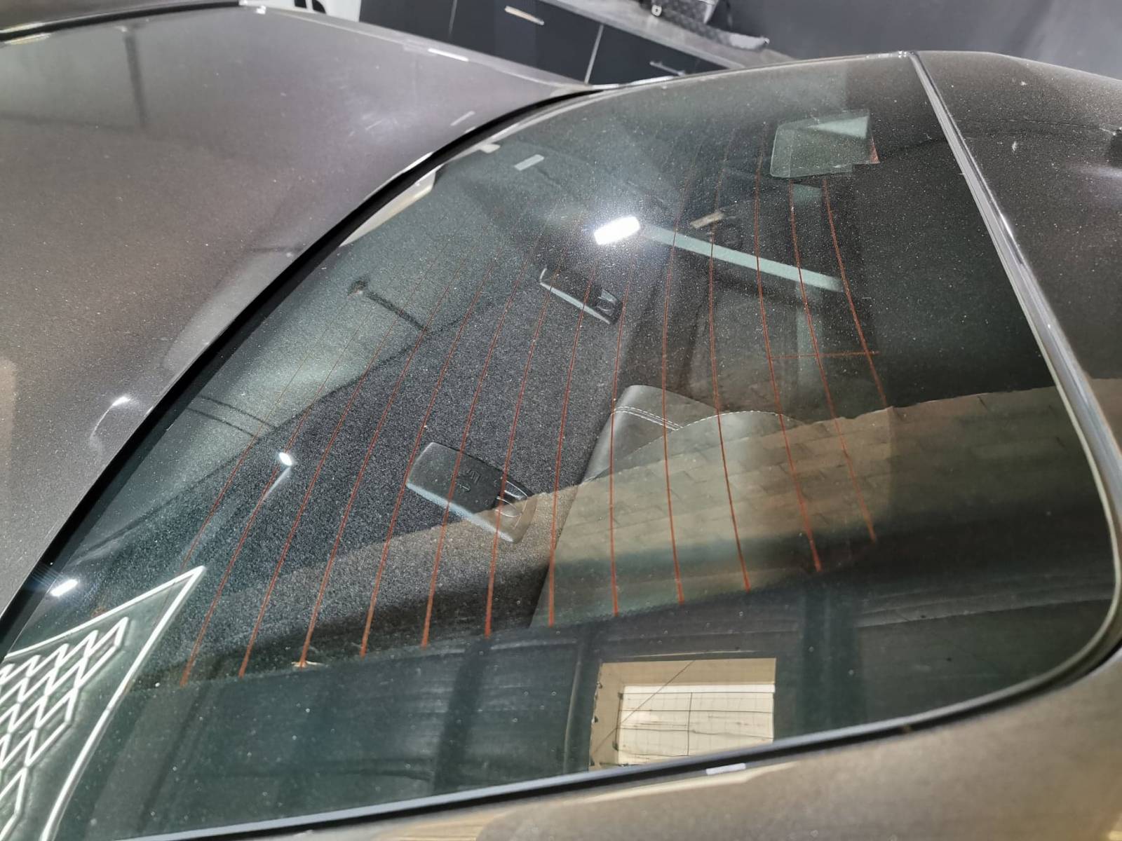 Sur la lunette arrière du fonce en 15